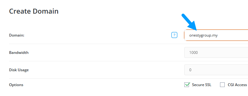 1. Masuk ke dalam Control Panel Cari Domain Setup
